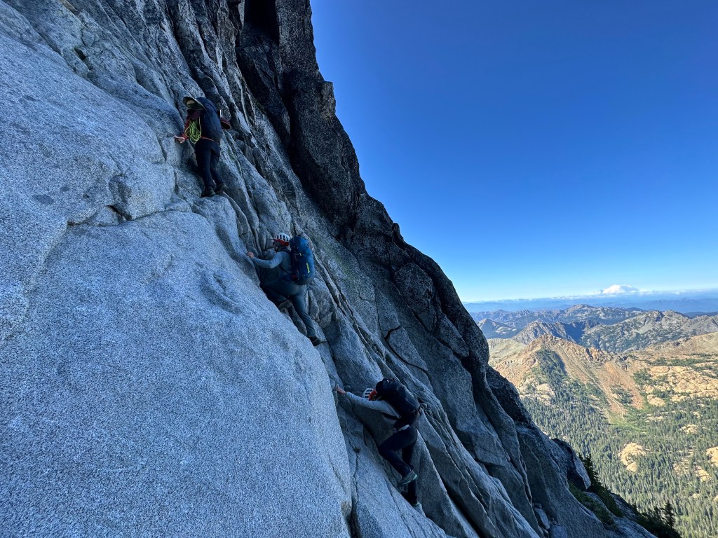 - or prior to the West Ridge Notch. A few bivy sites exist near 47.47561, -120.90570, which is a bit before the rock climbing pitches you rope up for. However, if you made a 3am alpine start and only made it as far as these bivy sites, you’re gonna have a really rough day with how much is left to do tomorrow.