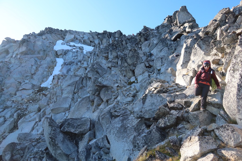 - getting to the summit: gain cumulative 3800′ on trail, gain ~2000′ on some epic scrambling, then 6 short pitches of rock climbing to top out