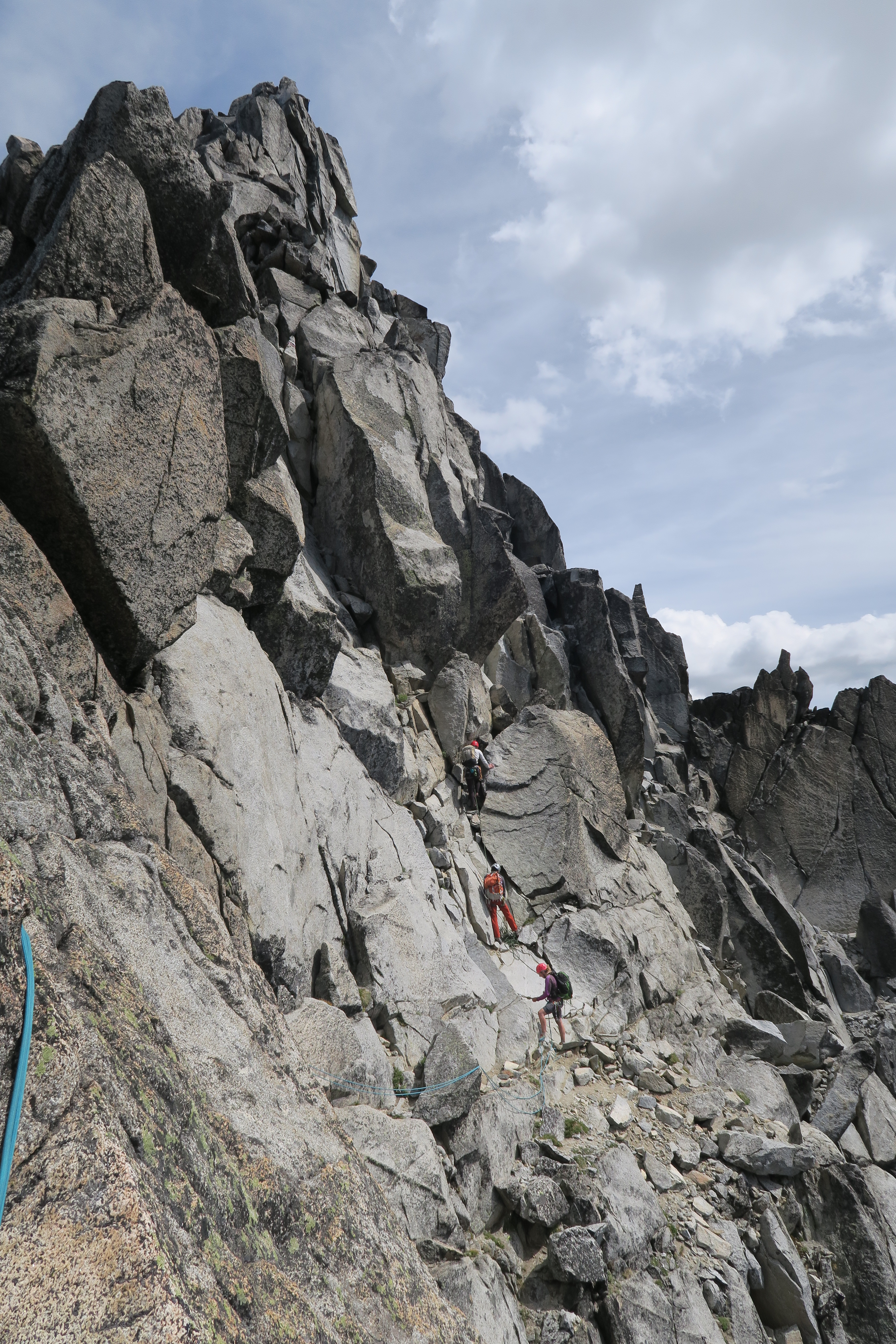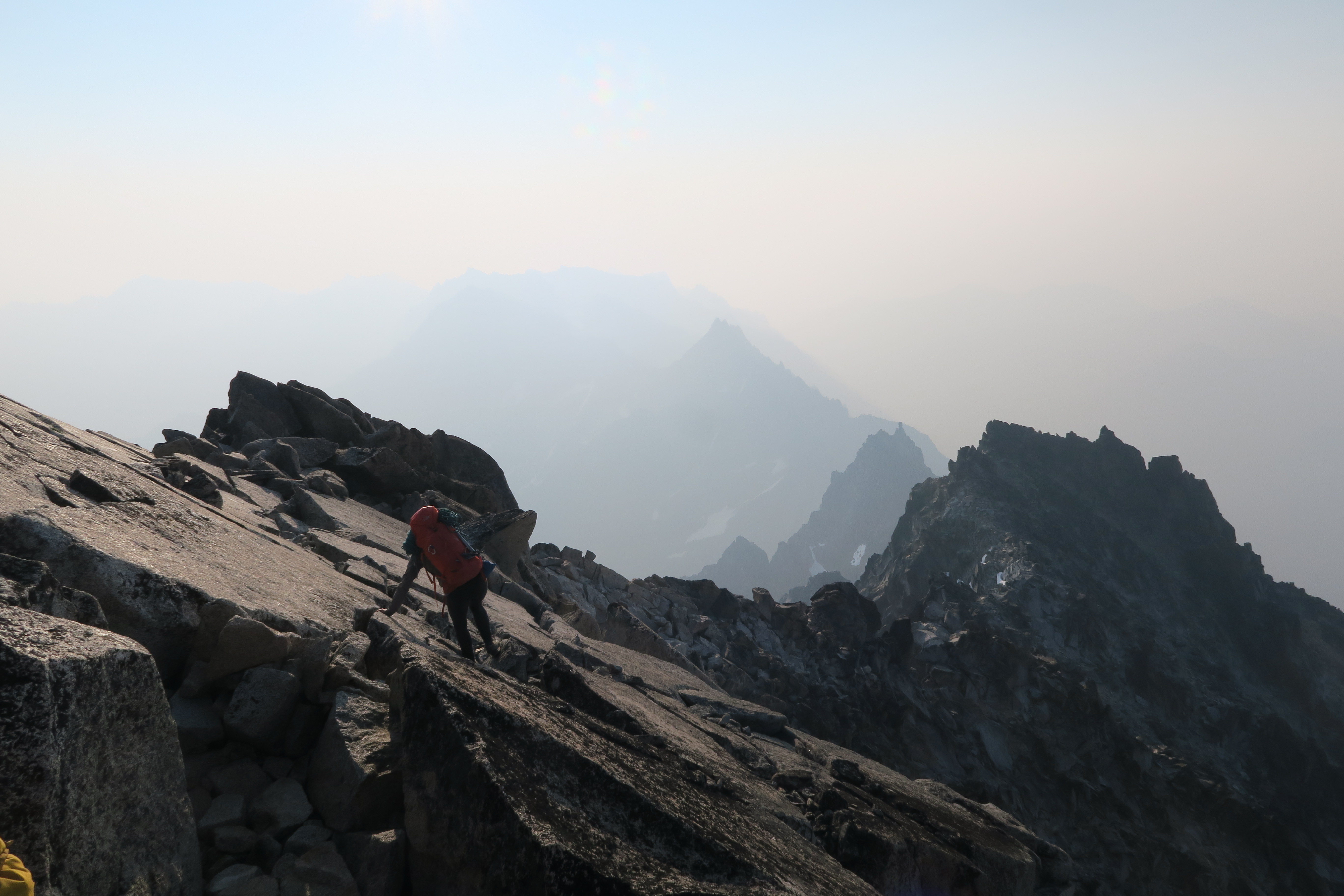 - or prior to the West Ridge Notch. A few bivy sites exist near 47.47561, -120.90570, which is a bit before the rock climbing pitches you rope up for. However, if you made a 3am alpine start and only made it as far as these bivy sites, you’re gonna have a really rough day with how much is left to do tomorrow.