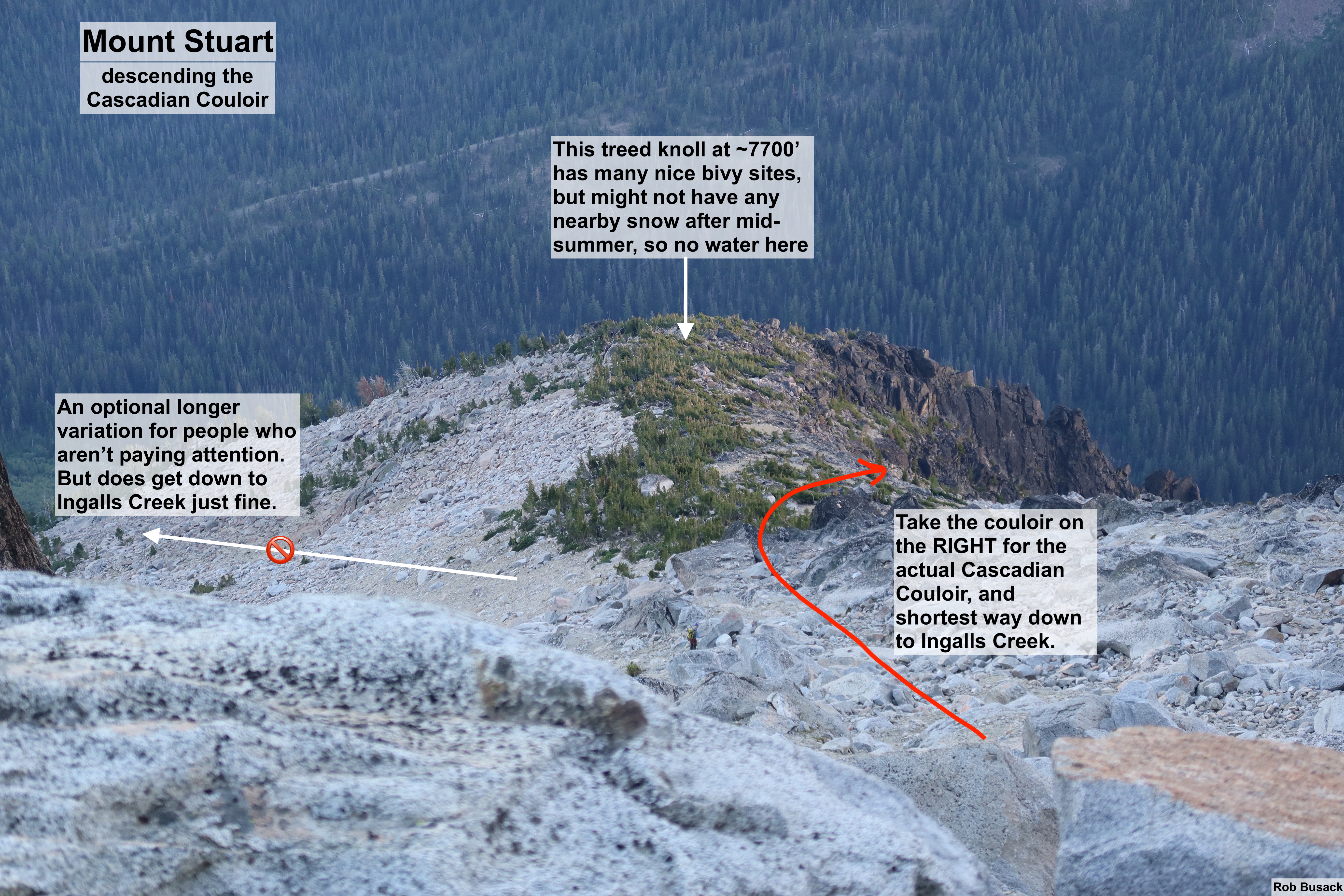 If this is your first technical route on Stuart (i.e. if you have not yet been to the top of Stuart, or if you have been up, but only via the Cascadian Couloir so far) then I say (half-joking, but also half-serious) that you only have two options for your schedule: